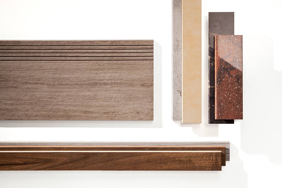 Edging machine for creating rounded bull-nose or bird beak edges on tiles, skirting boards and steps.