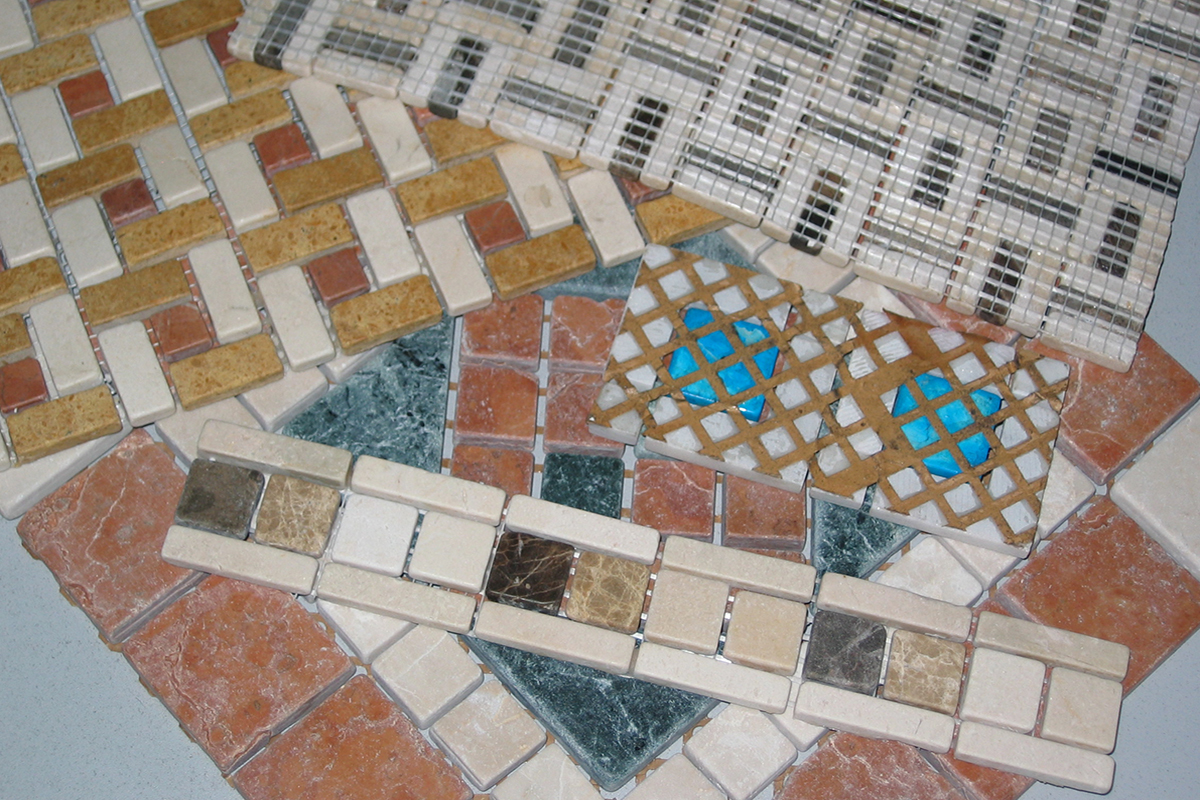 Machine to glue tiles, marble, any stones on paper net or fibre glass. The glueing is made by hand after that the operator will set the pieces into the trays, which will be supplied according to the mosaic drawing.