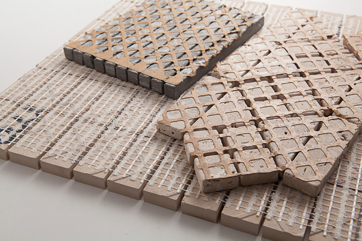 Machines for the automatic gluing of tiles, marbles and stones of any type onto paper mesh or glass fibre support.