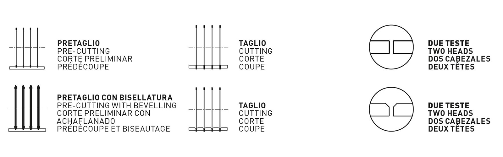 1) by using the second head you can chamfer by fitting chamfering discs shaped at 90°, thus obtaining a complete cut with superior chamfering.