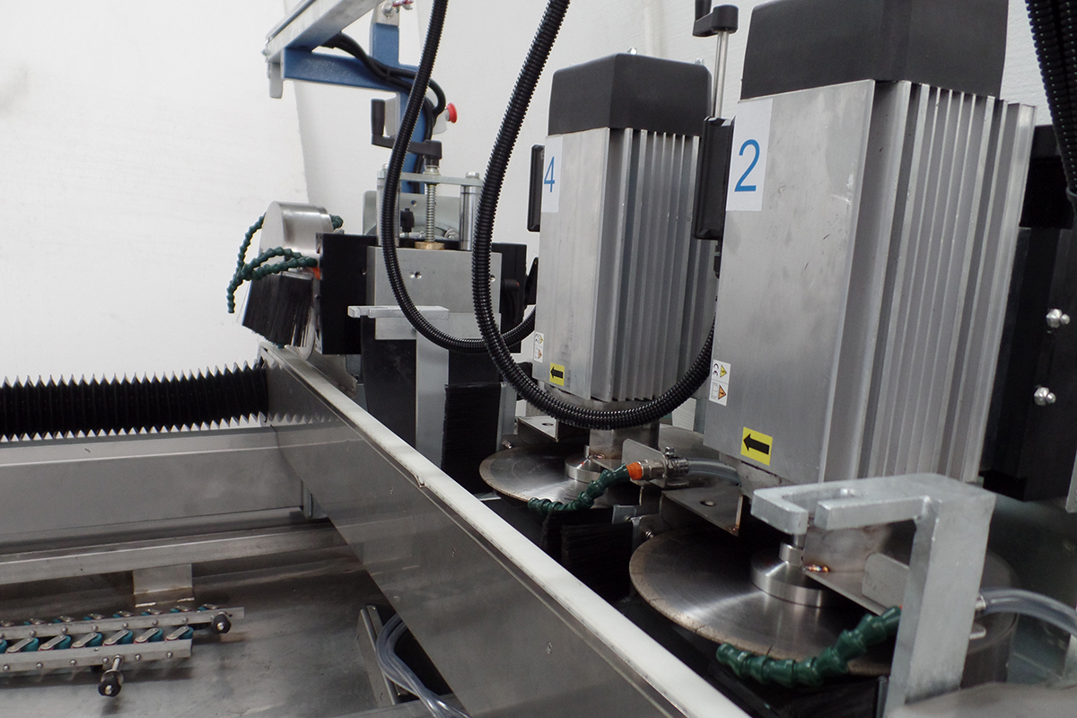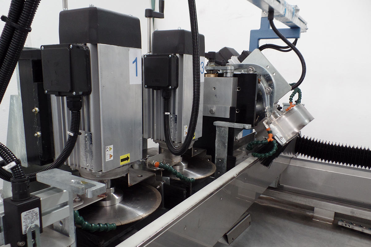 MRK KERF+SLOT+45°/90 machine makes kerf-slot incisions and 45°/90° cutting on the edge of materials in gres porcelain, agglomerated, granite, marble and