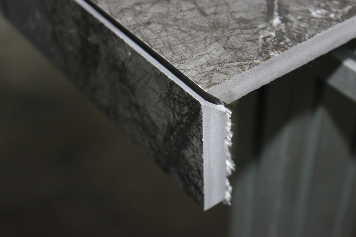 Automatic machine to bevel at 45° the slabs in gres porcelain, marble and stone which are necessary for the composition of steps.
