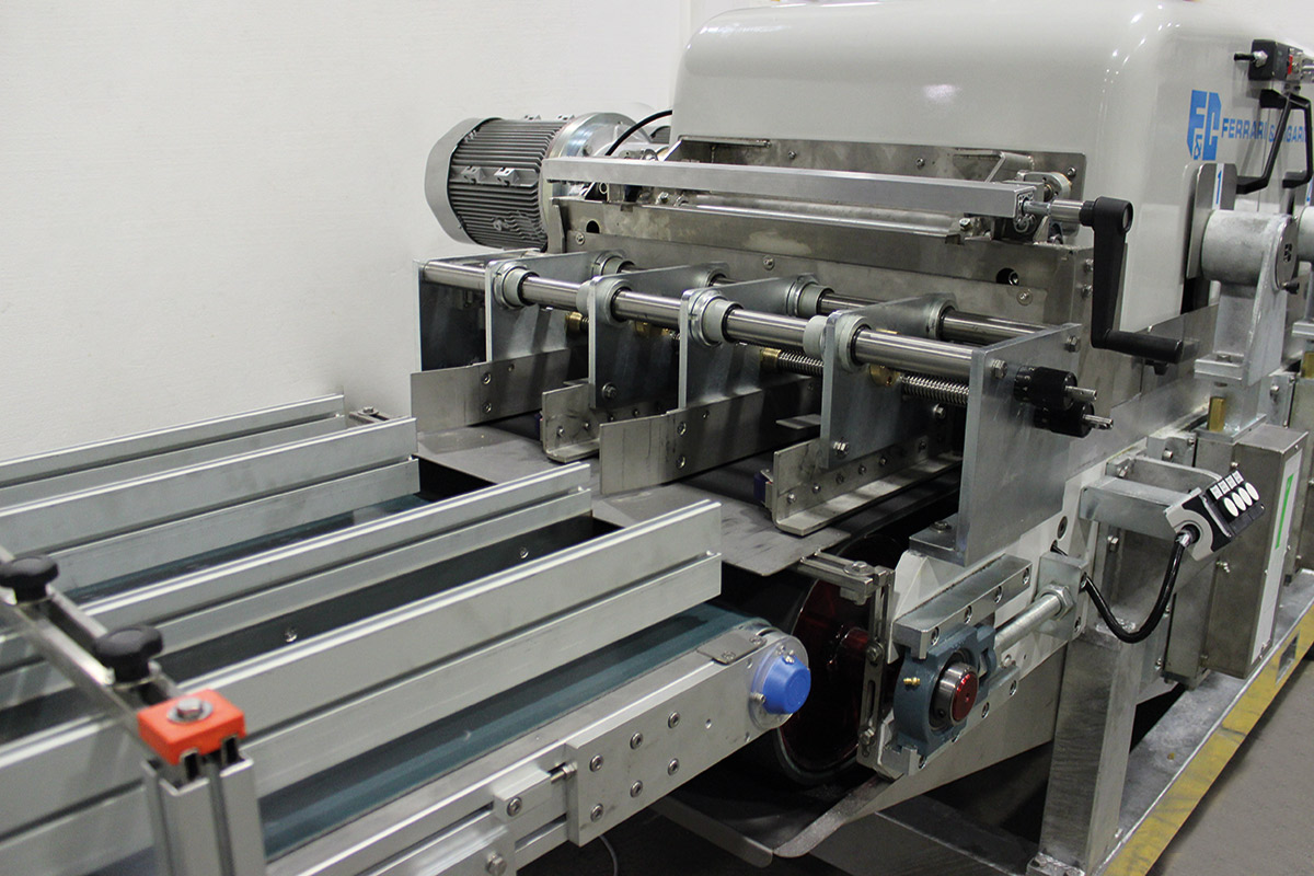 MTM 700/4 is an automatic multi-discs machine able to get listels, small pieces and paving slabs means by of a rectilinear cut. Thanks to its flexibility and practicality in using it, it is suitable to big sizes cuts, high thickness, different dimensions. It is characterized by an indeterminate structure with double support which makes it unique in its way and it allows big cutting and productive performances. The contruction, completely made of galvanized steel makes it unassailable against corrosive agents which are in humid enviromment and ferrous atomy.
